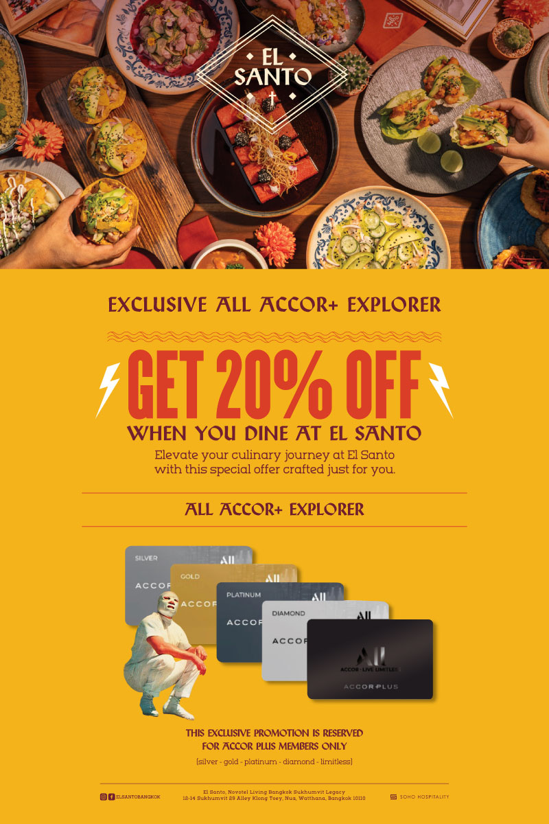 รับสิทธิ์ส่วนลดพิเศษ 20% สำหรับสมาชิก All Accor+ Explorer เพื่อแทนคำขอบคุณสำหรับความไว้วางใจที่มีให้เราเสมอ